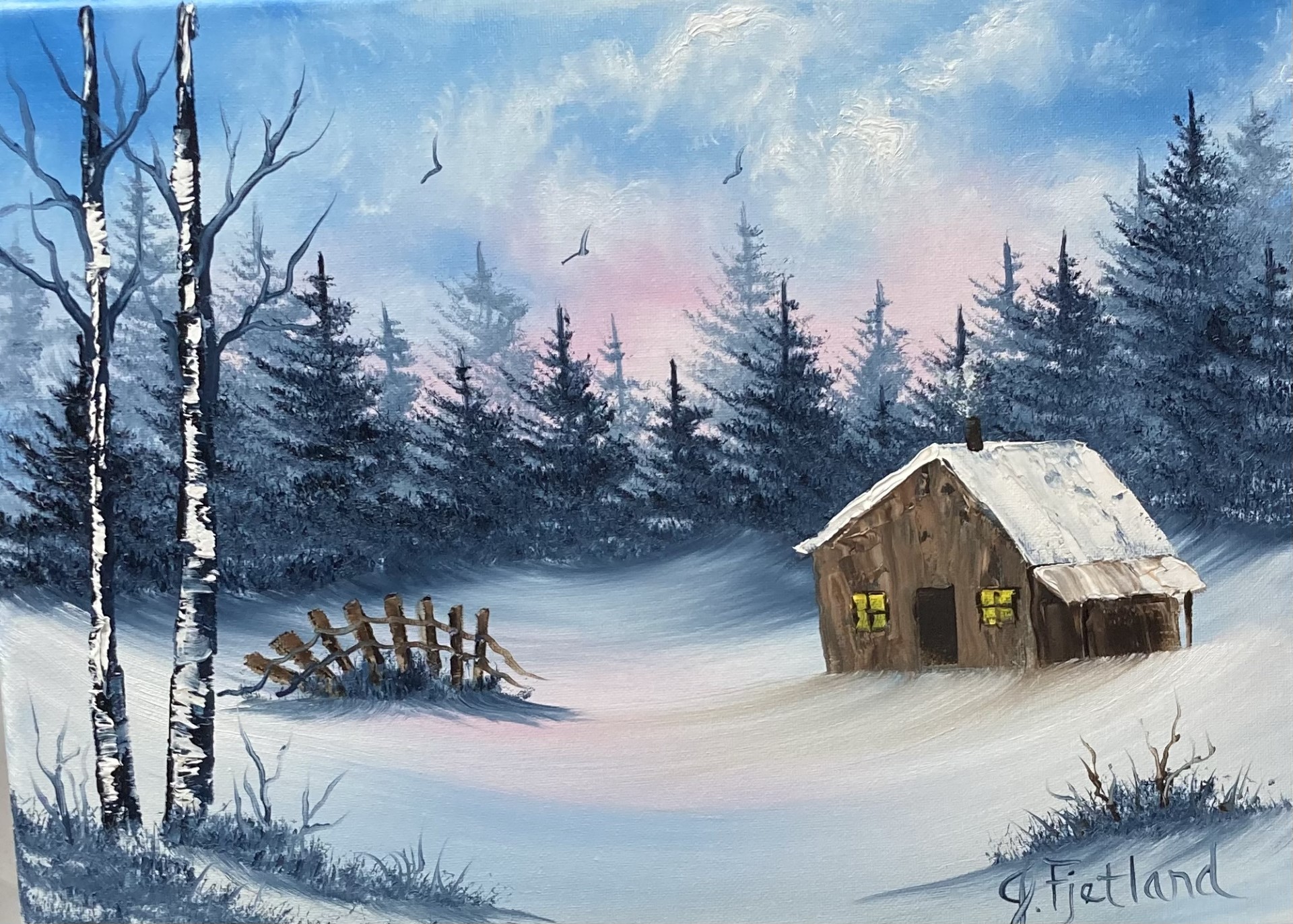 Join Julie, a Certified Bob Ross Instructor, as she guides you step-by-step through the process of creating this painting at Rush River Brewing, 990 Antler Ct., River Falls, WI. She will explain how to prep your canvas, load your brushes, and the brush strokes needed to complete each step, then you will have time to work on your painting as she comes around to help and answer any questions you may have. This is a wet-on-wet oil painting technique that anyone, 12 years or up, can do if you are willing to step out of your comfort zone and just give it a try. No experience is necessary. Class cost is $60 and includes all supplies. To register contact Julie at 651-448-0484 or email to jfjetland@hotmail.com as seating is limited. Yes, you can paint like Bob Ross!!!